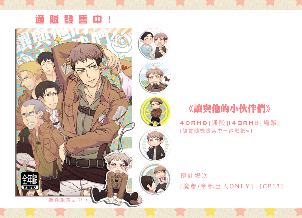 (關於貼紙:貼紙是給一刷本子里的一點碼字錯誤真誠的補償<(_ _)>cw場的貼紙數量有限只能送完即止了..通販的太太都會有的不好意思會等久一點.....如果有不想要貼紙想早點發本的太太可以私信我TAT)